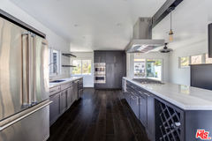 Modern lines mix with mid-century design framing the jet liner views from this Sherman Oaks pool home. Located South of the Boulevard, this home is an entertainer's dream. The main floor is open and inviting with a fireplace in the great room and brand-new Viking appliances in the chefs kitchen. Large windows and sliding glass doors lead to a covered balcony off of the living room. Sliding glass doors off of the kitchen lead to a large patio and pool with an elevated cabana. Upstairs, the master has a walk-in closet, large picture window and a private balcony overlooking the pool and valley below. The updated master bathroom has a soaking tub and a frameless glass shower. A second bedroom upstairs also has an upgraded en suite bathroom and a private balcony overlooking the valley. A third bedroom is on the bottom floor with its' own upgraded bathroom. Additionally, the bottom level contains a completely refinished two car garage a modern frosted glass door.